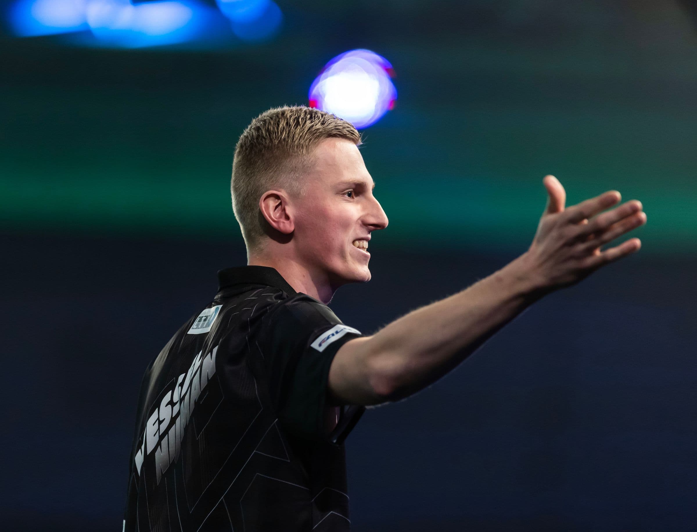 Young Dutch darting sensation Wessel Nijman overcame a challenging first-round encounter against South Africa’s Cameron Carolissen, narrowly edging a 3-2 victory.