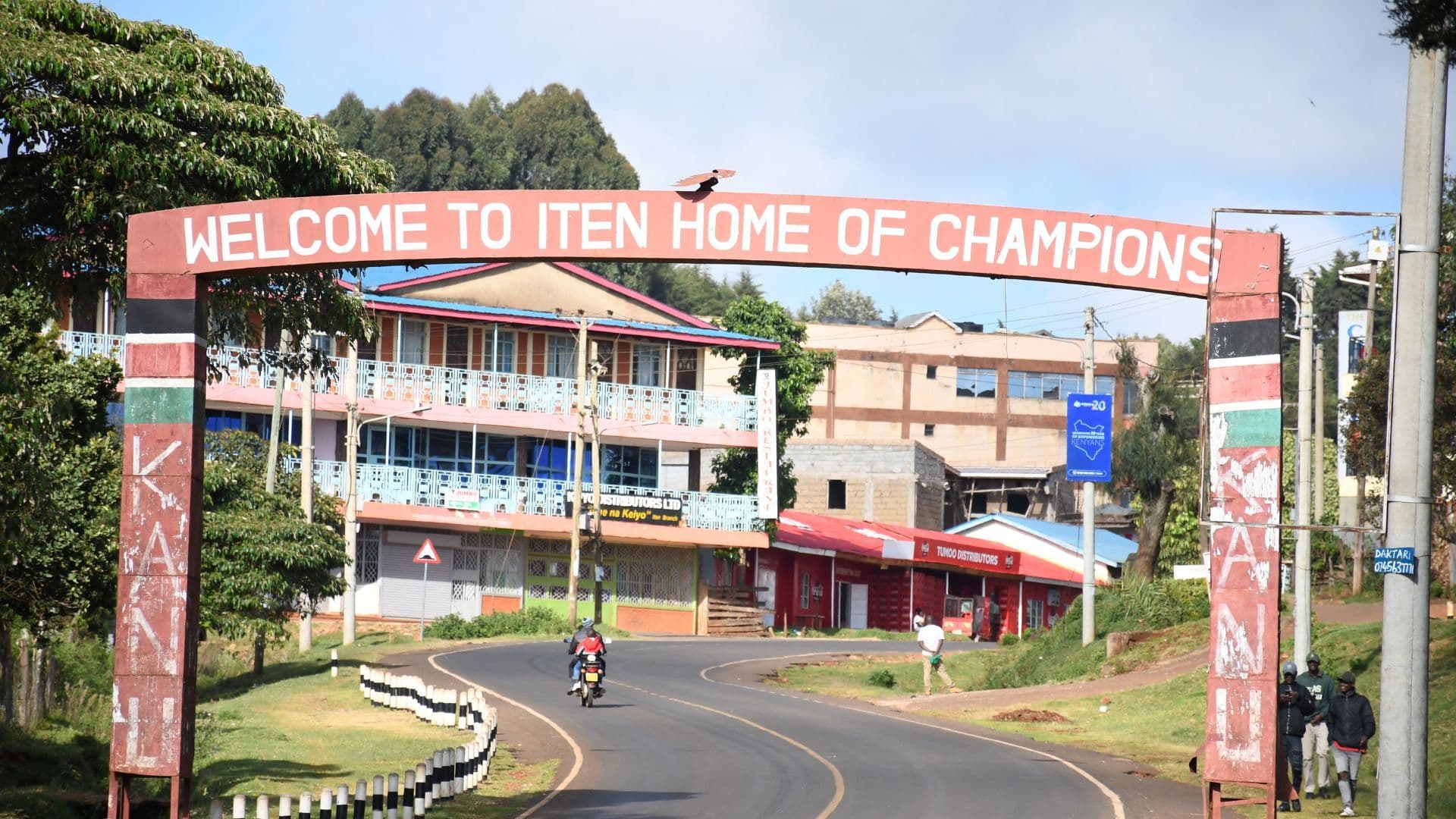 The arch has a message painted across the top: “WELCOME TO ITEN: HOME OF CHAMPIONS”. If you had to describe Iten in three words, “Home of Champions” are three very good choicesNo town has given athletics more champions than Iten. It has produced Olympic medalists, world champions, and Big City Marathon winners.