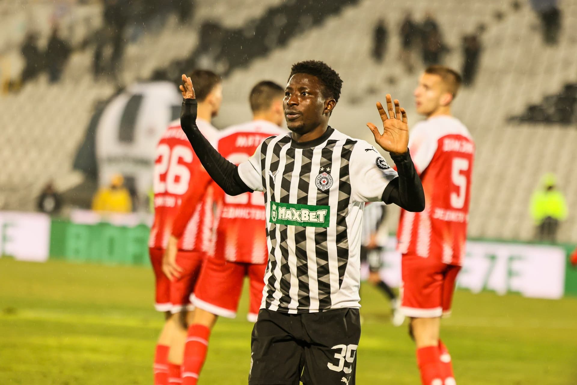Ibrahim Zubairu against Jedinstvo Ub at Partizan Stadium. Photo Credit @PartizanBelgradeMedia